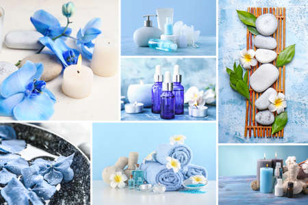 Beautiful spa collage in blue colors