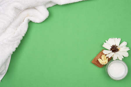spa products cosmetics health procedures Green background