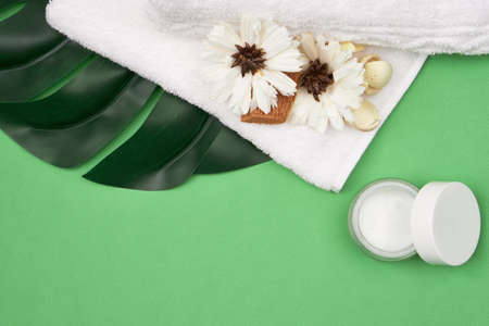 spa products cosmetics health procedures Green background