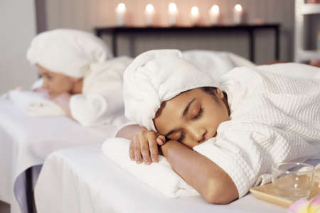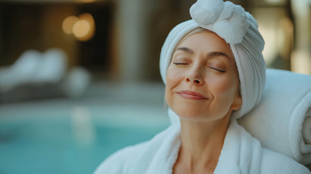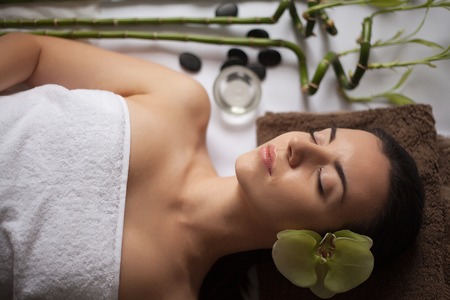 Portrait of a beautiful woman with closed eyes in a spa resort