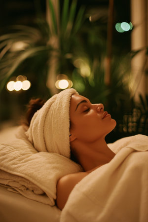 A serene woman relaxing during a spa treatment, embodying tranquility and self-care in a soothing environment.