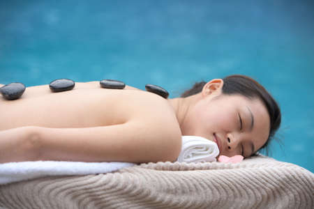 Theres no better feeling than a deep massage. Shot of a young woman getting a hot stone massage at a spa.