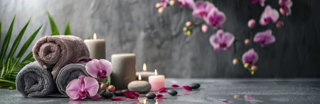 Experience serenity in a calming spa setting featuring soft towels, gentle candles, and delicate orchids, designed to enhance relaxation and wellness.
