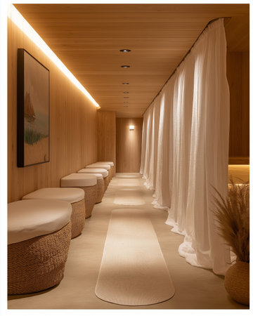Experience the tranquility of a spa interior designed for relaxation, featuring soft lighting, gentle colors, and natural elements that promote wellness and rejuvenation.