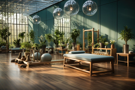 Instructor Guide Student in Pilates Zen studio., generative AI