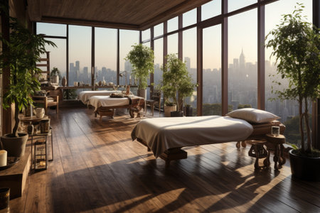 A Luxurious spa interior with massage beds and serene ambiance Generative Ai