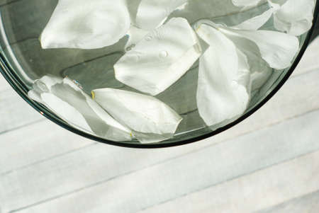 fresh white peony petals in aroma bowl