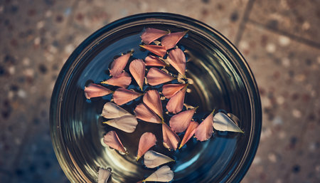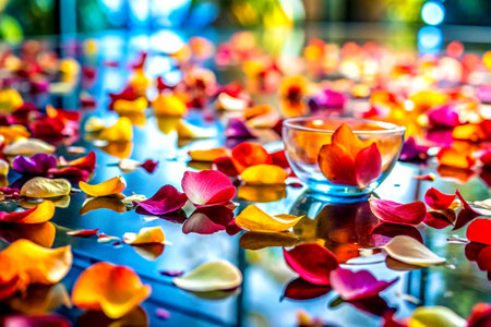 Floating flower petals in a glass bowl
