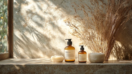 Immerse in tranquility with spa essentials and organic elements, Generative AI
