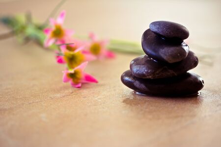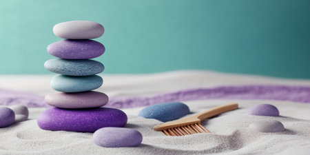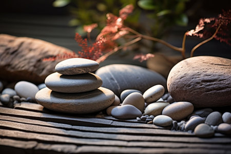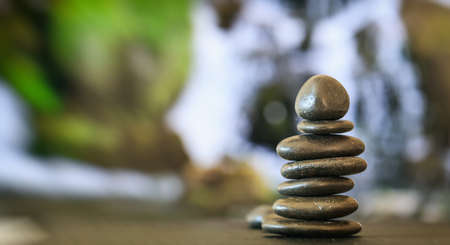 balancing zen pebble stones outdoor, spa wellness tranquil scene, soul equanimity concept, mental calmness, abstract retro colors