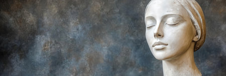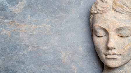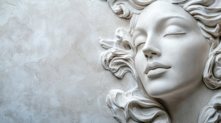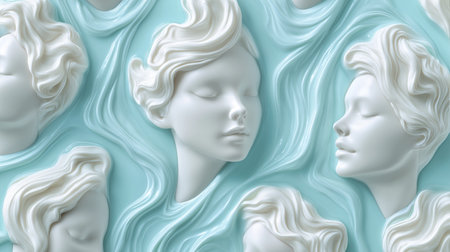 A serene sculpture of a face emerges from soft fabric, illuminated by gentle light, creating an ethereal atmosphere.