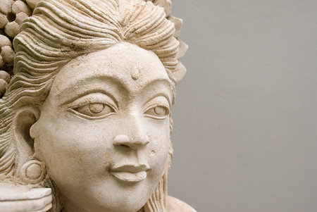 Viva Magenta monochrome color palette. Closeup statue Buddha head. Modern Art concept, soft focus