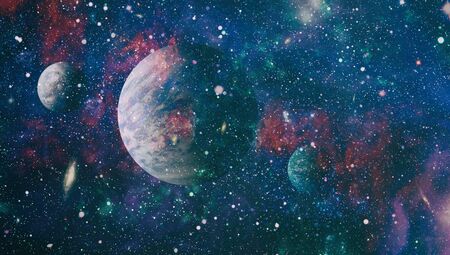 Stars of a planet and galaxy in a free space Elements of this image furnished by NASA