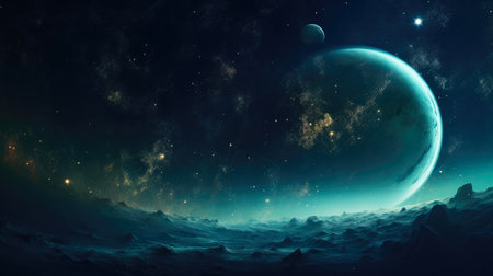 Banner. Space, galaxy and planets. AI generative. illustration in photorealistic style.