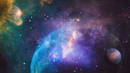 Stars of a planet and galaxy in a free space Elements of this image furnished by NASA