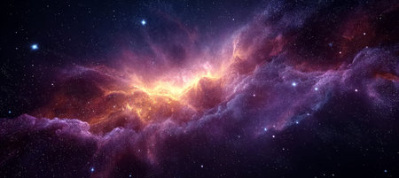 cosmic nebula, stars, universe, colorful, mystical space, purple, orange clouds, celestial background with brilliant colors and shimmering stars, bright cosmic scene