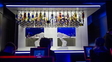 Prague,Czech Republic, December 12, 2019: Interior of the Robotics bar in Prague