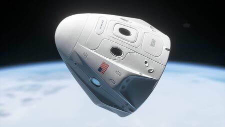 Generative AI : Astronomy conception Distant galaxies and deep space Spacecraft In Outer Space Crew Dragon spacecraft of American company SpaceX in space