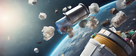 Space debris, pollution of the atmosphere of the planet Earth and space by human waste.
