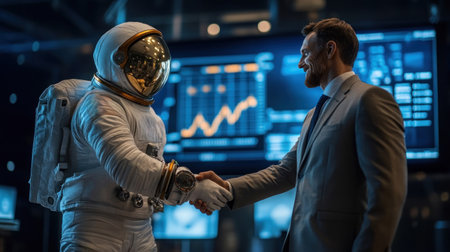 Generative AI : Astronaut hands with background of deep space Elements of this image furnished by NASA