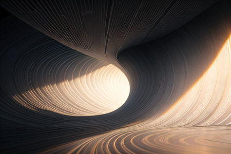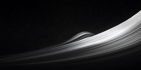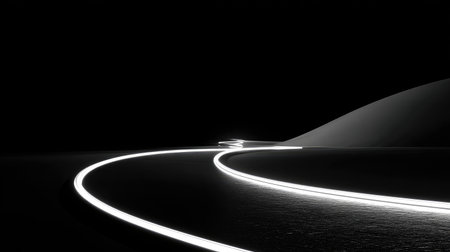 A stunning black and white composition featuring illuminated curved lines against a dark backdrop. This abstract image evokes a sense of movement and depth.