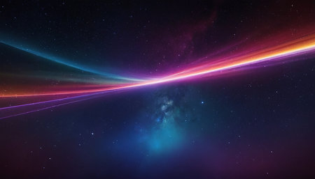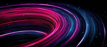 this abstract image features colorful neon light trails against a dark backdrop, creating a modern look