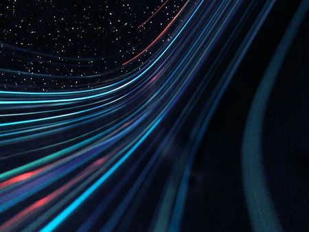Abstract light lines in the starry night sky. 3D rendering