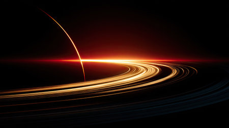 A sleek, high-tech composition featuring luminous orange arcs gracefully sweeping across a gritty black background, evoking innovation and dynamic visual energy.