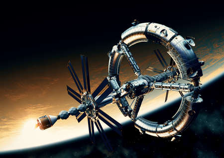 futuristic space station on Earth orbit.