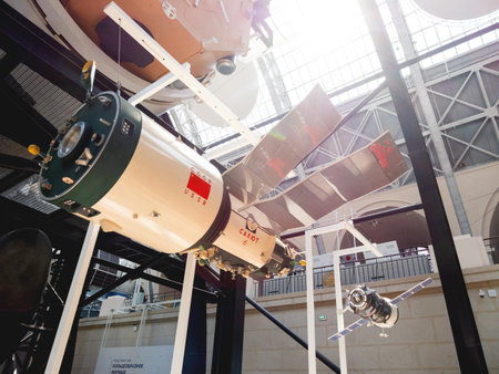 Kaluga, Russia - May, 02, 2021: The interior and exhibits of the Tsiolkovsky State Museum of the History of Cosmonautics.