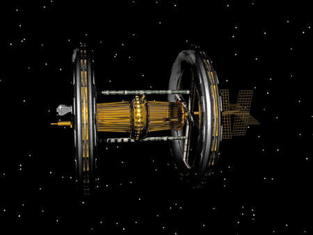 circular space station in space