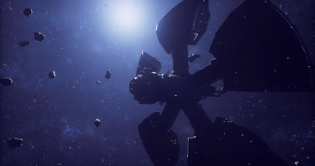 A detailed view of a spacecraft orbiting Earth, featuring intricate engineering and modern technology in space.