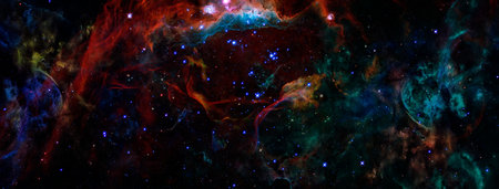 Abstract fractal illustration. Multicolored clouds of the starry sky. Banner. Used for design and creativity, for screensavers.