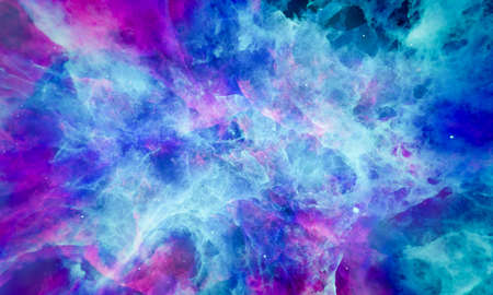 Aerosol clouds, space haze or cosmic rays, pink, pastel blue, space sky with many stars. Travel in the universe. 3D Rendering