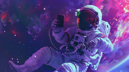 Space scene with an astronaut floating, surrounded by cosmic clouds and stardust, capturing the essence of exploration