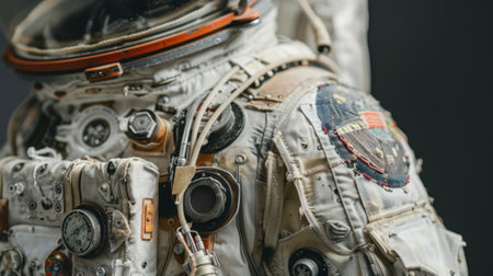 Close up of an Astronauts Space Suit, An image showing a detailed close-up of an astronaut's suit, with attached gear and tools, AI Generated