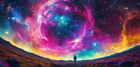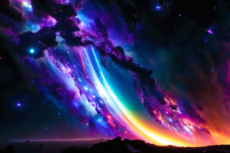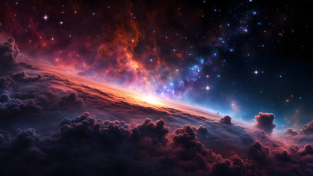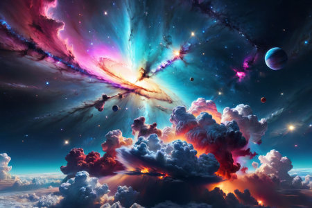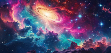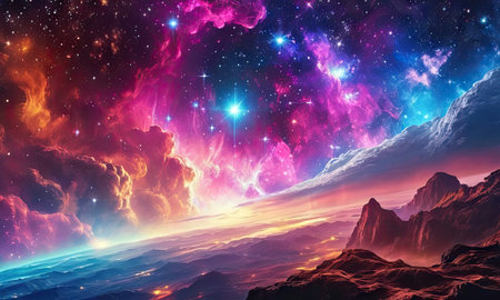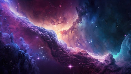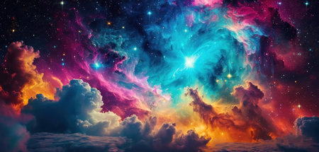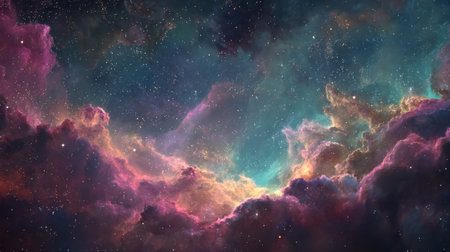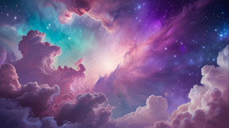 Cosmic-style background with colorful nebula and stars. Ideal for sci-fi, dreams, or fantasy-inspired visuals.