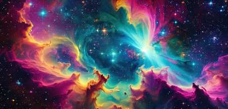 A breathtaking and magnificent view of a vibrant nebula showcasing stunningly beautiful cosmic colors and patterns
