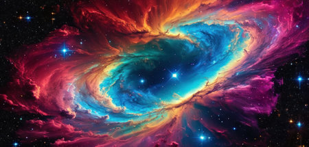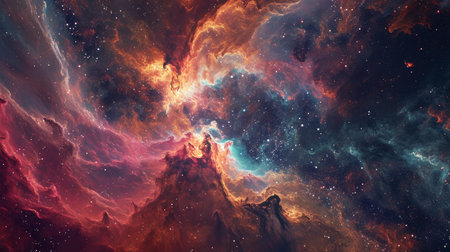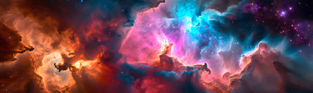 A cosmic nebula with vivid colors and countless stars, creating a stunning spectacle in the vastness of space