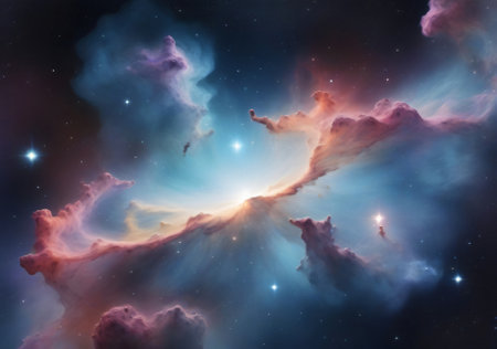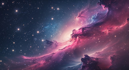 A breathtaking view of cosmic clouds illuminated in pink and blue tones, capturing the wonder of the universe and the mysteries within deep space.