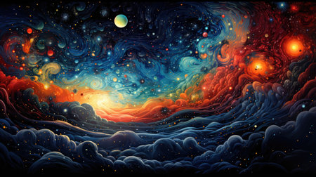 Colorful space galaxy and cloud nebula with endless universe with stars and galaxies in outer space. Abstract universe science astronomy wallpaper background. Stary night cosmos art. Ai Generated.