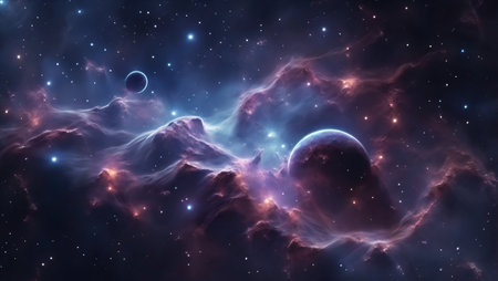 Space background with nebula and fictional planets. Generative AI