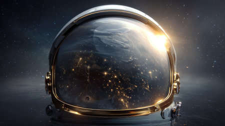 A stunning astronaut helmet captures a breathtaking view of Earth with twinkling stars, symbolizing the wonders of space exploration and cosmic beauty.