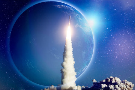 Launch of a space rocket into space.