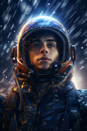 Gaze of an astronaut, space exploration portrait with starlight glow