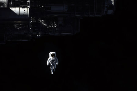 Astronaut spaceman do spacewalk while working for space station in outer space