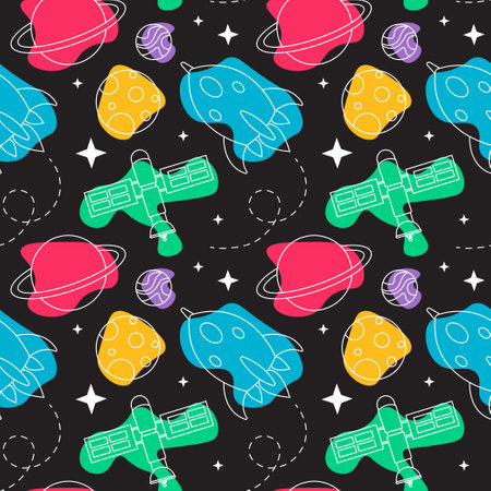 Space pattern seamless design for kids. Cartoon children decorative series.