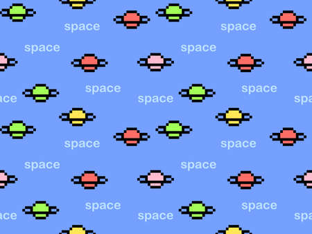 seamless pattern cartoon space. planets isolated on blue background. vector Illustration.