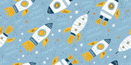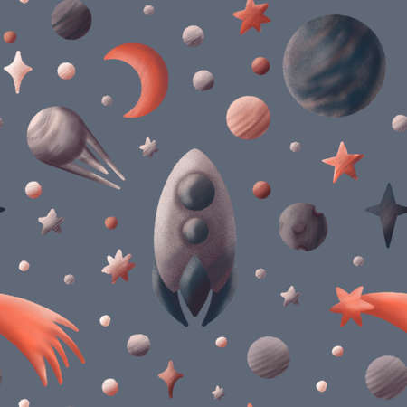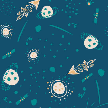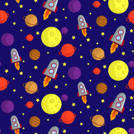 cartoon space. seamless pattern. rocket in space, comet and stars
