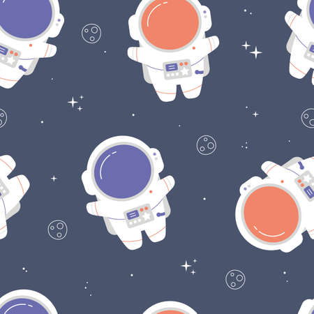 Cute seamless pattern with astronauts. Vector baby background in Scandinavian style. Astronauts on space background. Suitable for printing on wrapping paper, textiles, fabrics, clothing, wallpaper.
